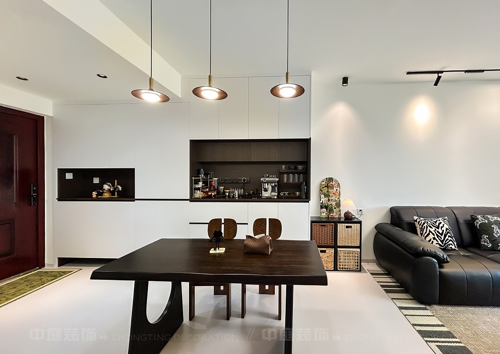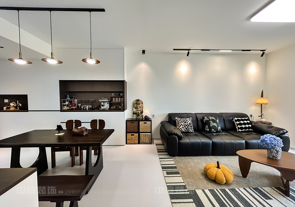 瀏覽量:66這套房從普通居所蛻變?yōu)槎际携熡鷪?chǎng),客餐廳以黑白棕營(yíng)造高級(jí)松弛感,咖啡角、藝術(shù)畫(huà)、游戲區(qū)藏著主人對(duì)生活的熱愛(ài),餐廚煙火與雅致共生,每處角落的陳設(shè)都是靈魂的妥帖安放,是裝滿(mǎn)故事與溫度的私屬堡壘。