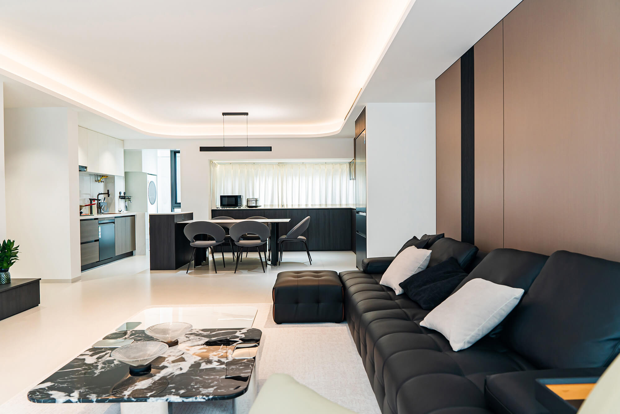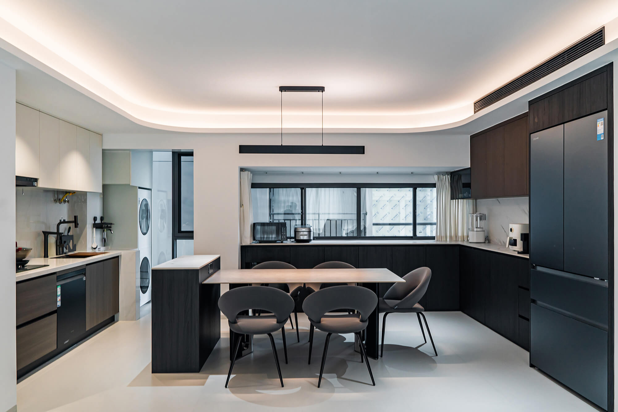 瀏覽量:115極致純粹的色彩美學(xué),以黑、白、灰三個基礎(chǔ)色構(gòu)建空間骨架,通過不同明度、材質(zhì)的層次對比(如啞光水泥、亮面巖板、磨砂金屬)豐富視覺。線條利落干脆,無多余裝飾,注重功能與結(jié)構(gòu)的統(tǒng)一性,打造冷靜、理性、富有高級質(zhì)感的極簡空間。